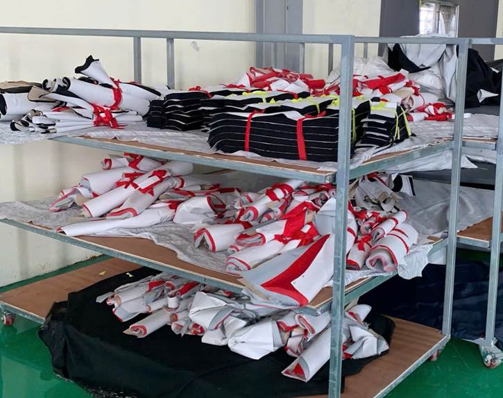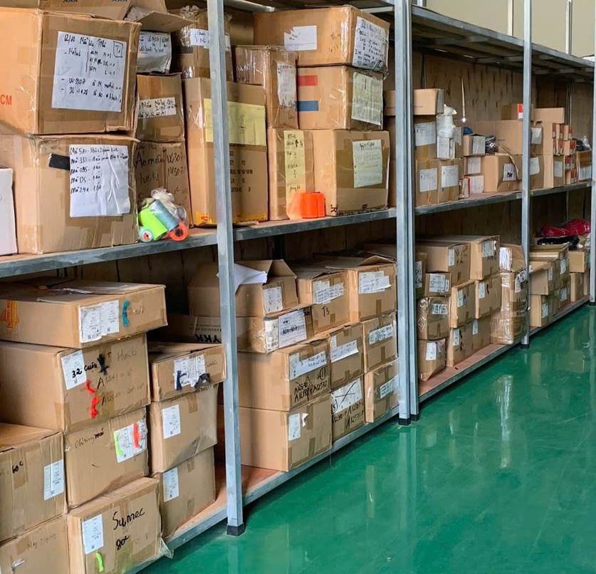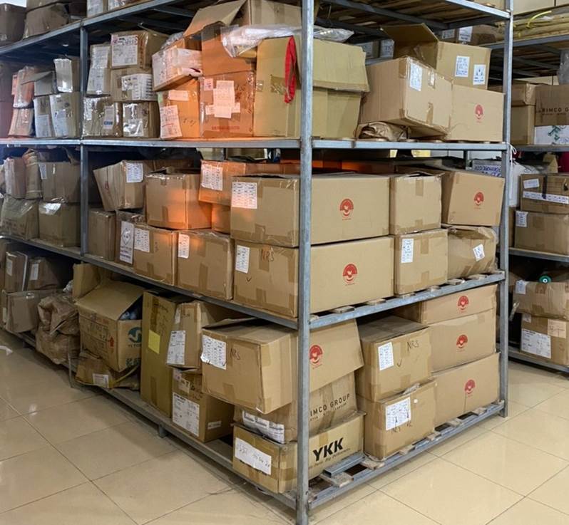 The area of raw materials and accessories is neatly placed, in the right place, convenient for production.